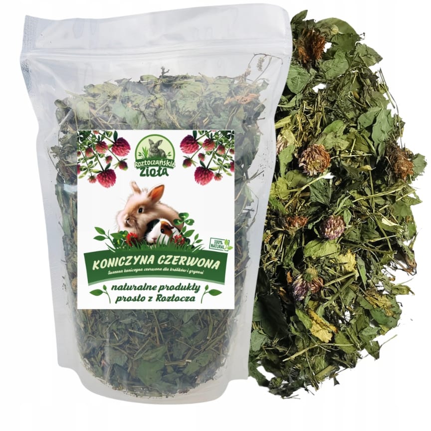 ✅ 100% Naturalny Skład – bez konserwantów i sztucznych dodatków, tylko czysta, suszona koniczyna z Roztocza.